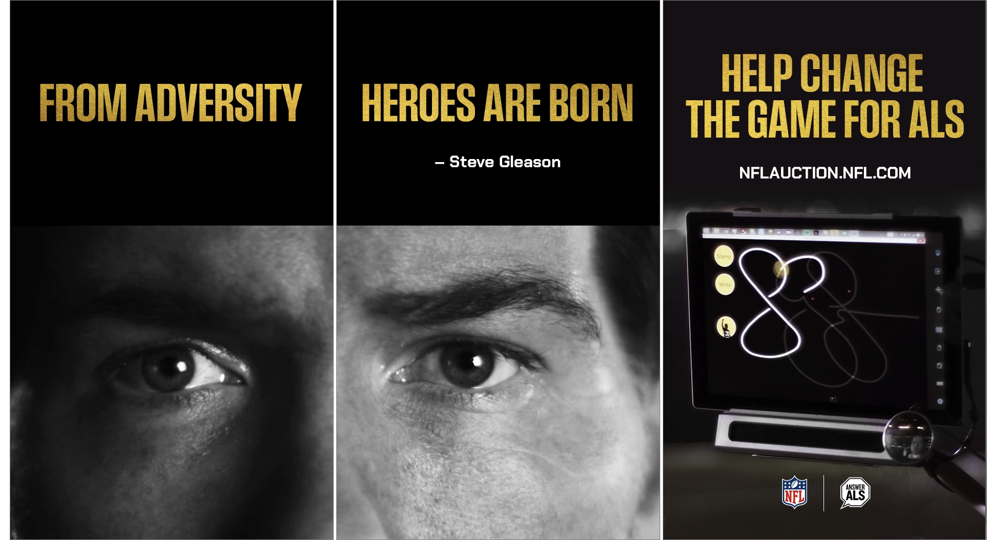 In support of former NFL star Steve Gleason, who has been living with ALS for over 6 years, the NFL donated online auction space for Gleason's Answer ALS foundation. The irony was that due to the progression of his disease, Steve couldn't participate in his own auction.